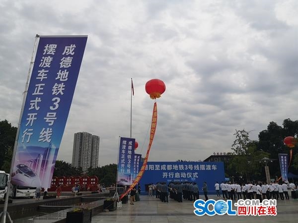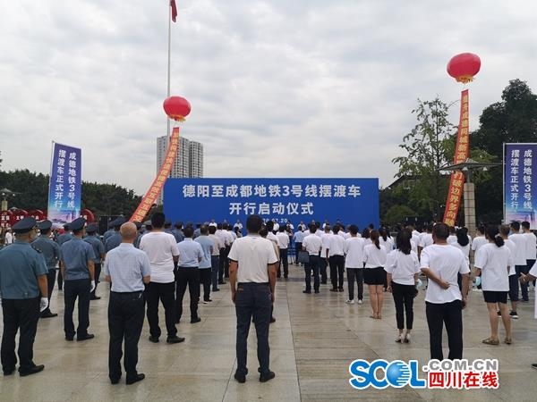 四川在线消息(记者 余如波 文/图/视频)作为德阳深化成德同城化,努力为成渝地区双城经济圈建设做贡献的又一有力举措,7月20日上午,德阳至成都地铁3号线摆渡车开行启动仪式在德阳文庙广场举行。3辆统一涂装的白色大巴满载乘客从德阳文庙广场出发,历时约50分钟抵达位于成都市新都区的成都地铁3号线成都医学院站。