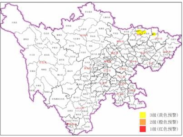 7月20日,省地质灾害指挥部办公室发布全省地质灾害气象风险预警,结合四川省气象台天气预报情况,7月20日20时~7月21日20时,广元利州区、朝天区、旺苍县、昭化区,巴中南江县为地质灾害气象风险3级(黄色预警)。