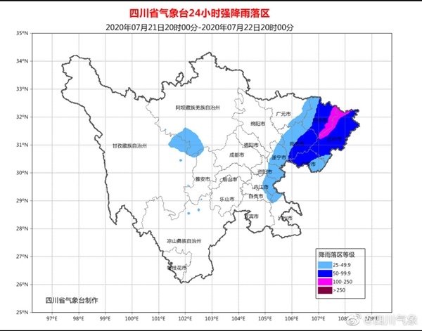 四川省气象台7月21日下午发布暴雨蓝色预警: