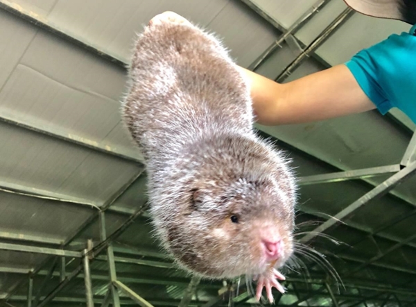 罗军此前的竹鼠基地里的竹鼠,这只有3斤左右,生活在配种区。周梦颖 摄