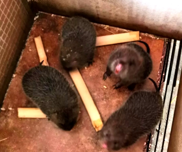 罗军此前竹鼠基地里的竹鼠。竹鼠每天吃玉米粉和麦麸混合的饲料,还有一小截竹子。周梦颖摄