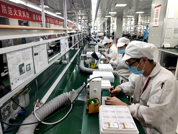 1—6月,宜宾全市智能终端企业规上工业增加值同比增长 39.1%,在实现高速增长的同时,也成为宜宾外贸进出口的“主力军”。记者了解到,上半年宜宾智能终端企业实现进出口总值44.1亿元,同比增长93.6%,占全市外贸总值比例超六成。值得一提的是,其中出口值达32.3亿元,产品主要包括手机及成套散件、手机主板等。