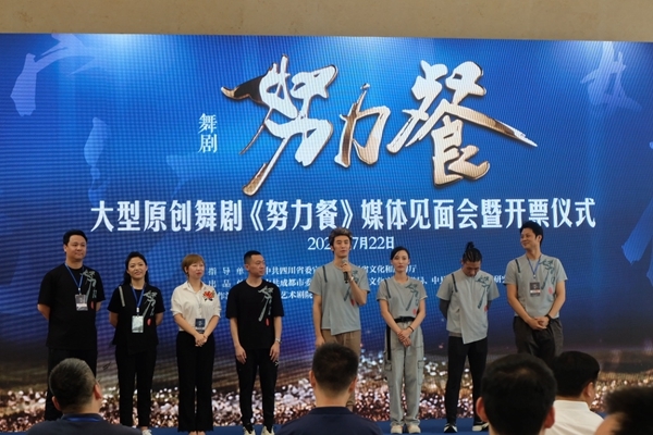 7月22日,成都城市音乐厅旋转楼梯上陈列着民国时期四川文化符号的道具装置,大厅里展出着一幕幕创排纪实照片。大型原创舞剧《努力餐》以这样特别的形式正式同媒体和公众见面,娓娓道出了这部剧与舞、与天府文化的血脉承接,并宣布今日开票,9月4日至9月6日在成都城市音乐厅上演,观众总人数不超过最大荷载量的30%。
