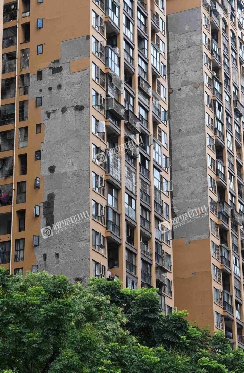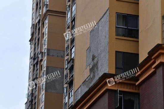 另据朱峰介绍,在外墙掉落的时候,曾经差点砸到过车和人员。现在小区在大门搭建了一条封闭式的人行过道以保证过往人员的人身安全。对于外墙何时能修复,目前龙泉驿区住建局已经组织开发商和住户协商细化修补方案。