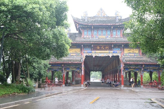 走进三层构造的状元桥,一抬头便能看见青黛色的飞檐和翘角伸向天空。桥面主体为明清建筑风格,器宇轩昂。再进入120米的廊桥,雕梁画栋五彩缤纷,还有不少水墨画和彩绘。桥旁,一块红褐色巨型石碑揭开了它的身世:“中华科举起于隋、止于清,一千三百年出状元五百有余,宋代之璧山独占其二,曰冯公时行、曰蒲公国宝,邑人遵朝制,建状元坊……”原来,这里曾是状元坊的故地。由于民国时期状元坊遗迹被毁,2011年当地政府在此重建状元桥,以表纪念。