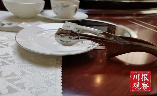 7月15日,记者走访了遂宁城区的几家餐馆。在河东新区一家名为打鱼仔的饭店,记者看到桌上除餐具外,还有一个特别的不锈钢夹子。“这是分餐夹。比一般的夹子短小一点,方便个人夹取。”饭店赖经理说,“之前我们是在餐厅放公筷,但是顾客反映,用着用着就用混了。”