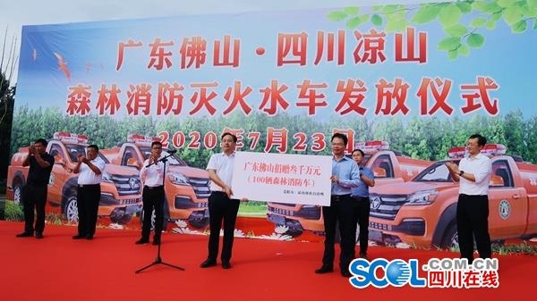 7月23日,广东佛山·四川凉山森林消防灭火水车发放仪式在西昌举行,佛山捐赠资金采购的100辆森林消防灭火水车发放到凉山州应急管理部门和各县(市)。