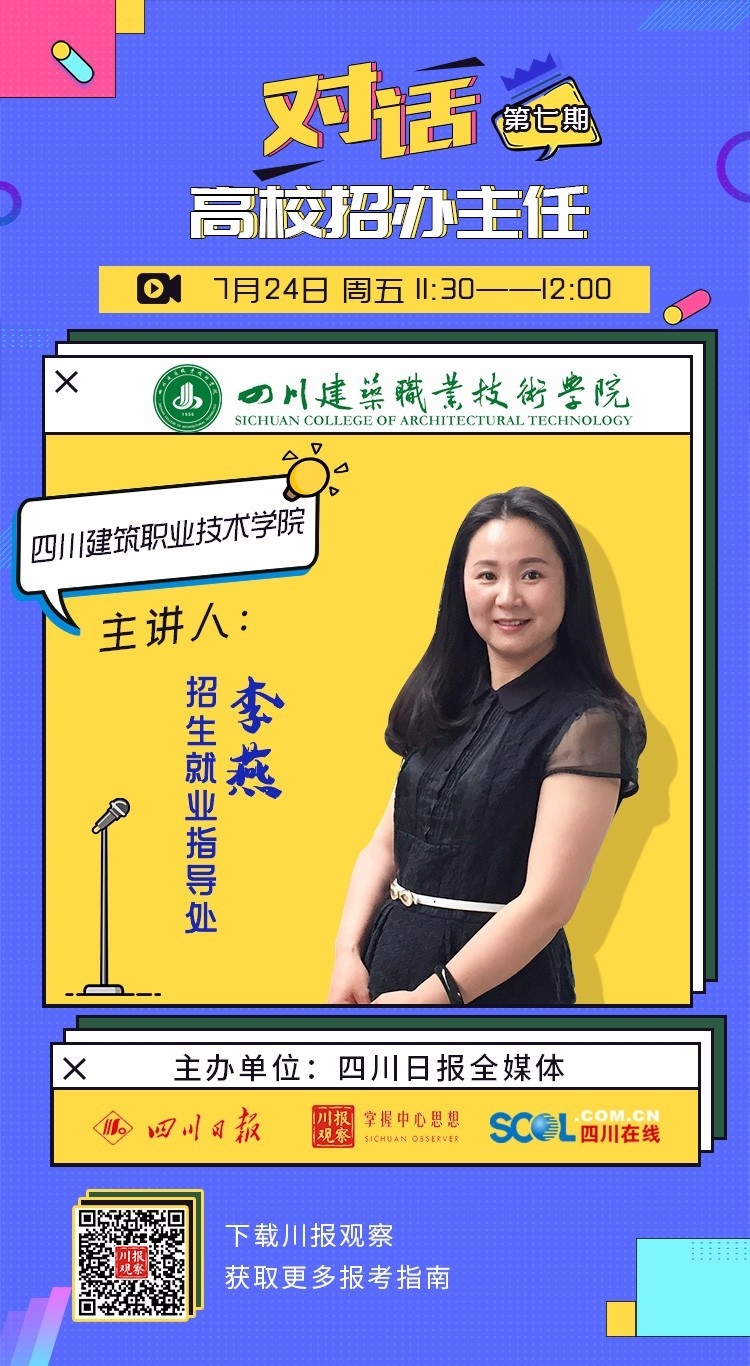 四川在线消息(刘梦 记者 江芸涵)7月24日,由四川日报全媒体重磅推出的“后浪们,高校招办主任‘拍了拍’你”2020高校招生咨询直播第七场开启。四川建筑职业技术学院招生就业指导处李燕老师作客直播间,为广大考生和家长解读四川建筑职业技术学院今年的招生政策、优势专业,并回答网友提问。