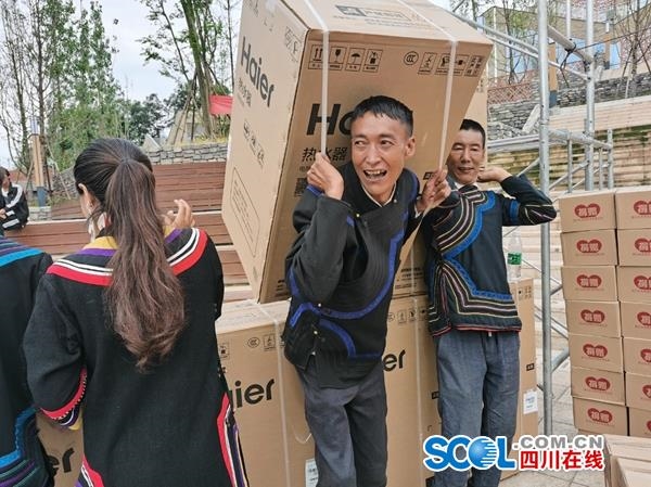当天发放的这批物资,由四川云无线科技公司捐赠。“作为一家凉山企业,我们真心希望为老乡们过上好日子出一份力。”公司总经理陈涛说,此前,公司承担了安置点热水器的安装任务,其间被老乡们搬进新家的喜悦所感动,于是采购了这批价值34万余元的捐赠物资。“我们将全力协助社区,尽快将这批物资将发放到居民手中。”