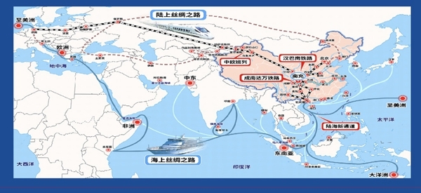 “陆海新通道”是中新(重庆)战略性互联互通示范项目的重要组成部分。该通道利用铁路、公路、水运、航空等多种运输方式,由重庆向南经贵州等省份,通过广西北部湾、钦州港等沿海沿边口岸,通达新加坡、东盟及非洲主要物流节点,运行时间比经东部地区出海节约10天左右。西部陆海新通道位于我国西部地区腹地,北接丝绸之路经济带,南连 21 世纪海上丝绸之路,协同衔接长江经济带,在区域协调发展格局中具有重要战略地位。