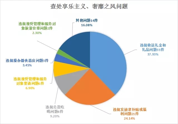 从查处享乐主义、奢靡之风问题看,查处享乐主义、奢靡之风问题87件114人,给予党纪政务处分86人。
