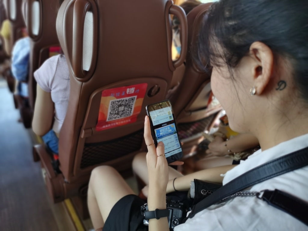 早上10点,随着一声清脆的“铛铛”声,载满游客及市民的铛铛车从春熙路的IFS出发,驶向宽窄巷子和熊猫基地。记者在车上看见,扫描获取成都图书馆数字阅读资源的“二维码”被细心地贴到每一个座椅背后,以方便游客随时随地获取成图的海量云端数字阅读资源。除了各类丰富读物、讲座,游客还可扫码获得地方特色文旅信息,以及由City Tour城市旅游观光巴士提供的旅游优惠和福利。