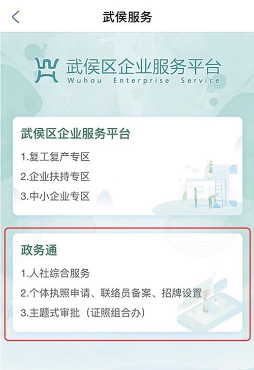 通过整合各类网上经办系统的登录入口,优先推行网上“综合柜员制”,让企业、群众登录手机“支付宝”平台,便可在“武侯服务-政务通”界面办理涉及就业创业、社会保险、人事人才、劳动关系的各类人社业务15项!