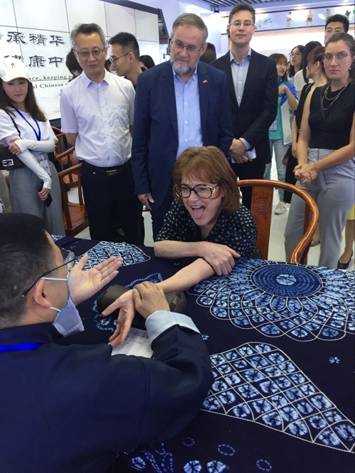 "中医很不错"在体验了中医按摩后,奥地利驻成都总领事馆商务领事穆娥说到。在活动中,领事官员们先后来到麦冬博物馆、麦冬规范化种植基地、太极集团绵阳制药有限公司,了解绵阳中医药产业发展,体验特色诊疗服务,感受凝聚哲学智慧和健康养生理念的传统文化精髓。中医药大健康产品、中药香囊、茶饮品鉴、中医非药物疗法体验,大家对每个环节表现出了极其浓厚的兴趣,加深了对中医药的了解和认识,"以前对中医药了解不多,通过活动加深了认识,现在在德国已有了中医药,今后会推进中医药的合作。"德国驻成都总领事馆总领事鲁悟刚说。