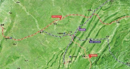 另外,争取遂宁到黔江的高铁经过广安。现在,广安到成都要花3个半小时,这条铁路修通后只需要1个小时。如果这条路打通,将成为成南达万高铁外,四川向东出川的第二条高铁通道。