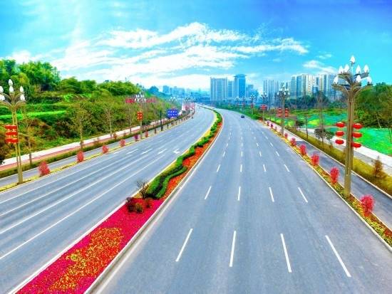 广安深入实施城市提质和乡村振兴“两大工程”,图为广安朝阳大道(郑继明 摄)