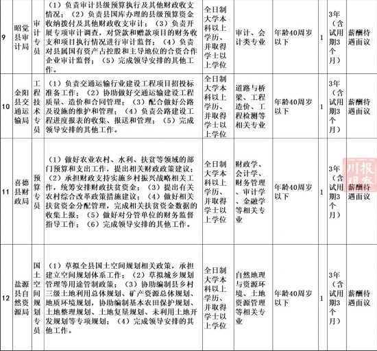 报名考试、薪酬待遇等详情,请访问浏览四川组工网(www.gcdr.gov.cn/