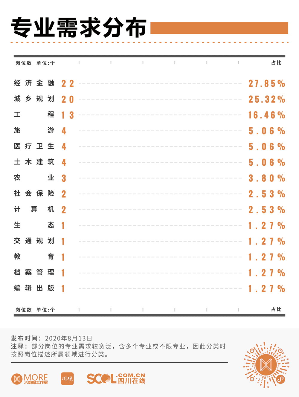 2020年8月13日,根据省委组织部统一部署,四川组工网发布了我省2020年聘任制公务员招聘公告,为建设成渝地区双城经济圈、推进“一干多支、五区协同”“四向拓展、全域开放”战略部署提供坚强有力人才支撑和组织保障的需要。今天,川报全媒体集群MORE大数据工作室用数据图为您解读,来看看“年轻多金”的四川省聘任制公务员招聘究竟情况如何?