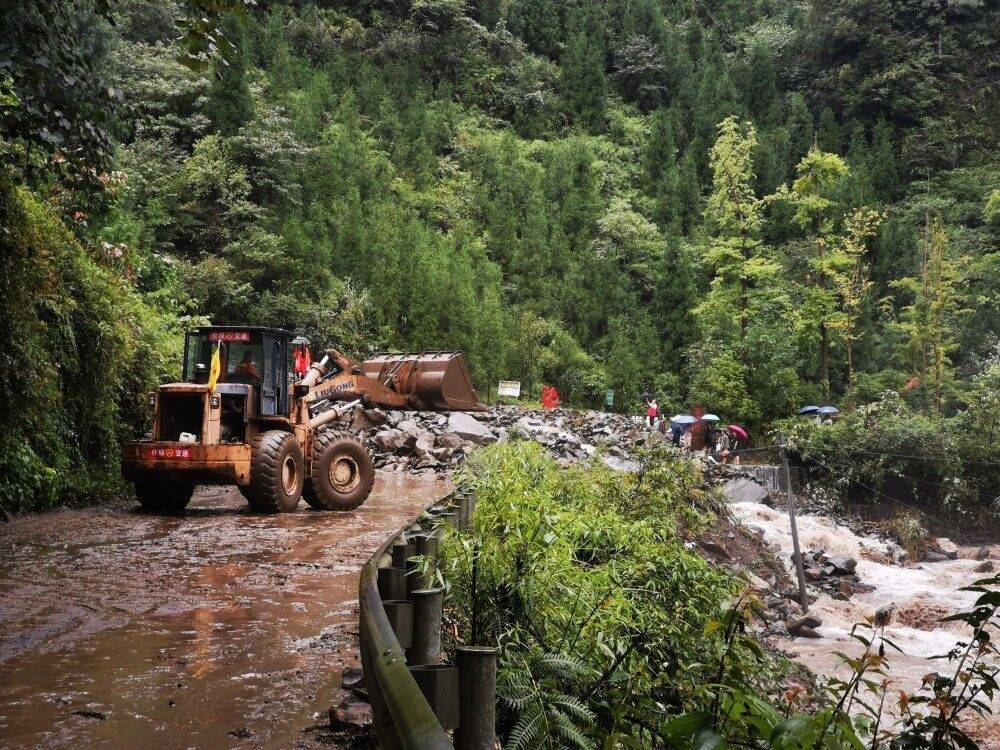 经过大型机械近4个小时的作业,12日晚7点半,现场清理出一条便道恢复通行。受山洪和泥石流影响,当地景区已处于全面关闭状态。