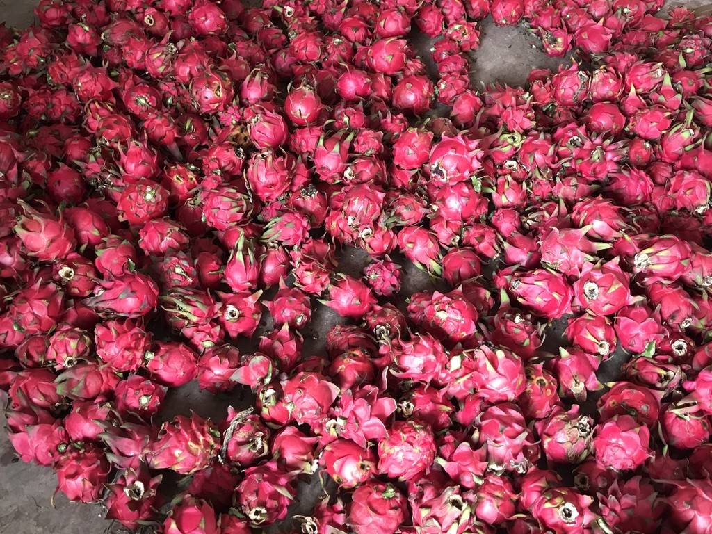 走进上糖庄火龙果种植基地,连片的火龙果长势喜人,一排排整齐的类似仙人掌的植物,细看过去,一个个鲜红欲滴的火龙果挂满枝头,煞是喜人,一阵风吹来,带来阵阵果香。果园里工人们正在如火如荼地熟练采摘,“好的好的,十斤红心火龙果,没问题,马上就发货!”王顺生手机频频响起,订单不断。