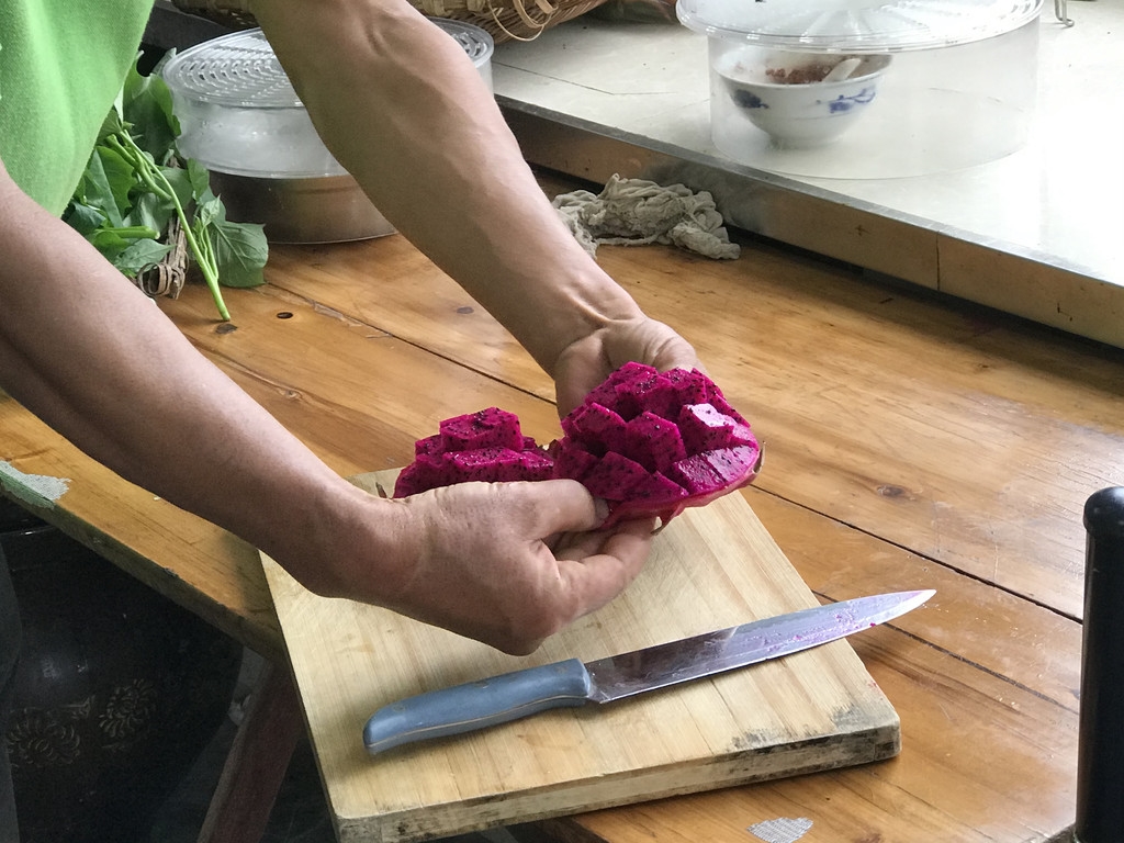 火龙果虽然口感好,卖相佳,但是种植却着实不容易。王顺生告诉记者,基地里的火龙果是从台湾引进的红心火龙果品种,皮薄如纸,入口即化,它需要温暖的种植环境。为此,基地搭建了大棚,为火龙果营造适宜的生长环境,再通过人工看护,施以有机肥,才结出了果大味甜的优质火龙果。“最大的果实,重量可达1.3斤!”