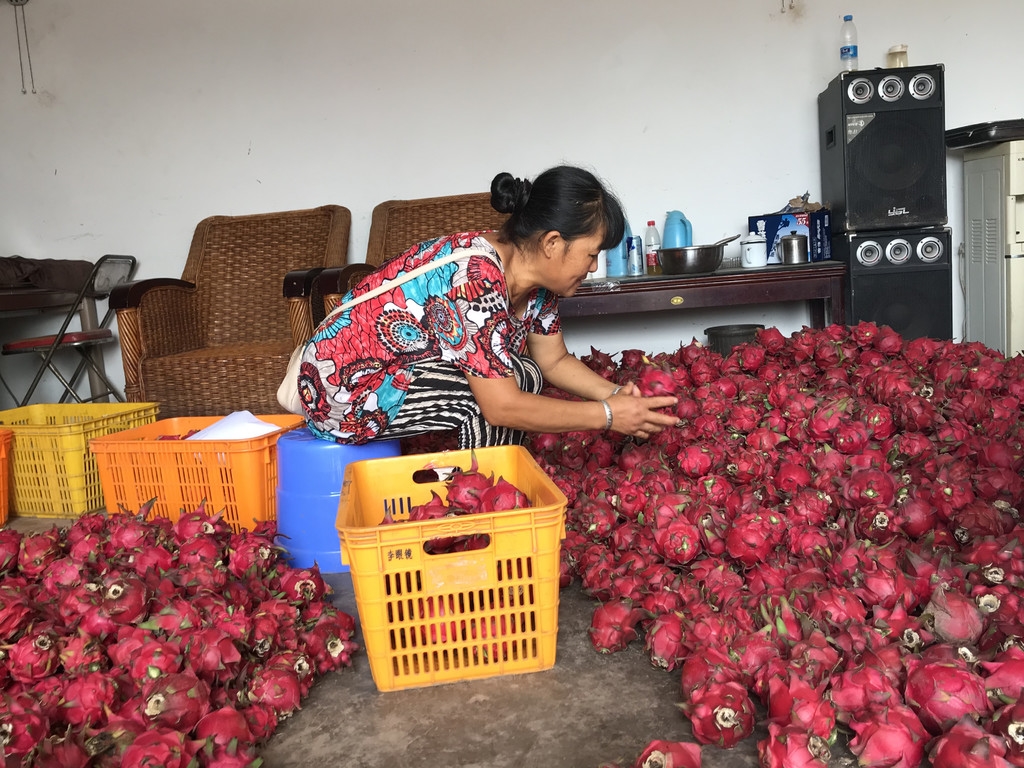 “最近几天,每天有18人左右在基地采摘。”王顺生介绍,火龙果从5月开始成熟一直将持续到10月,其中,每隔半个月就有一批次果实成熟,一年大概有10批次。而眼下,正是火龙果成熟的第6批次,是成熟的高峰期,基地里忙得不亦乐乎。