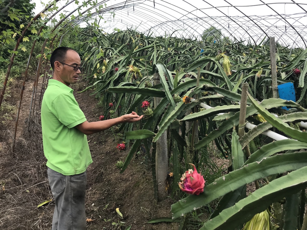内江市市中区全安镇湾桥村的火龙果正值挂果高峰期!8月12日,在内江上糖庄种植专业合作社负责人王顺生的带领下,记者走进占地约40亩的火龙果种植基地。