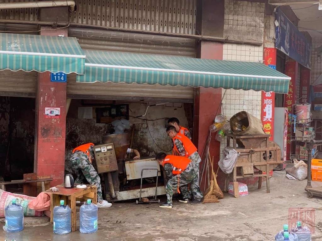 川报观察在抢险现场看到,一位队员手臂上缠着绷带,忙上忙下。