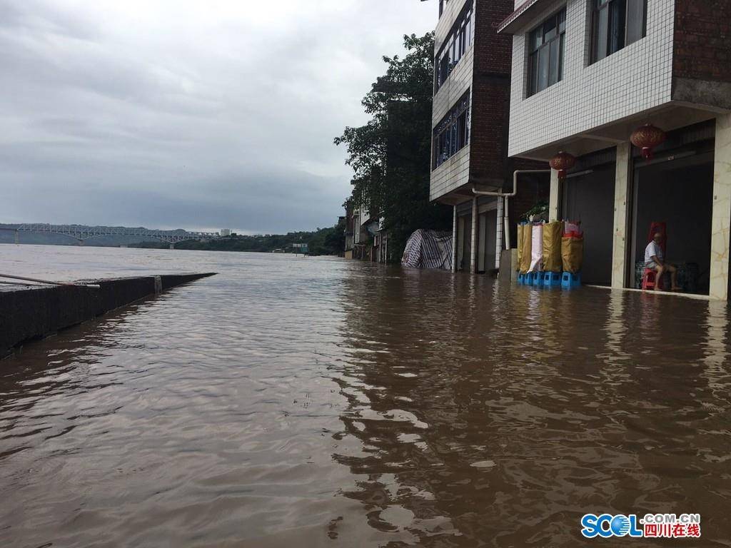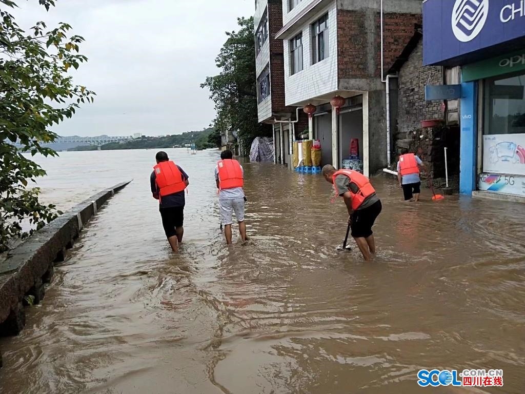 8月13日上午,受洪峰过境影响,宜宾市叙州区柏溪街道喜捷社区滨江路漫水,沿街商铺已全部被淹,水最深处离地面达1.7米。所幸在12日傍晚,赶在江水漫上路面之前,沿街的45户商家被及时转移到了安全地带,并未造成人员伤亡和重大财产损失。