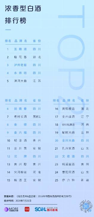 据《南方周末&益普索:2018年中国白酒品牌影响力排行》显示,在浓香型白酒排行榜中,四川占了9席,在前十名中,更是占据了6个席位,实力强劲。