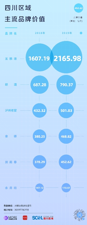 据川财证券研究报告显示,2018年和2019年,五粮液分别以1607.19亿元、2165.98亿元的品牌价值高居榜首,远超其他主流品牌。