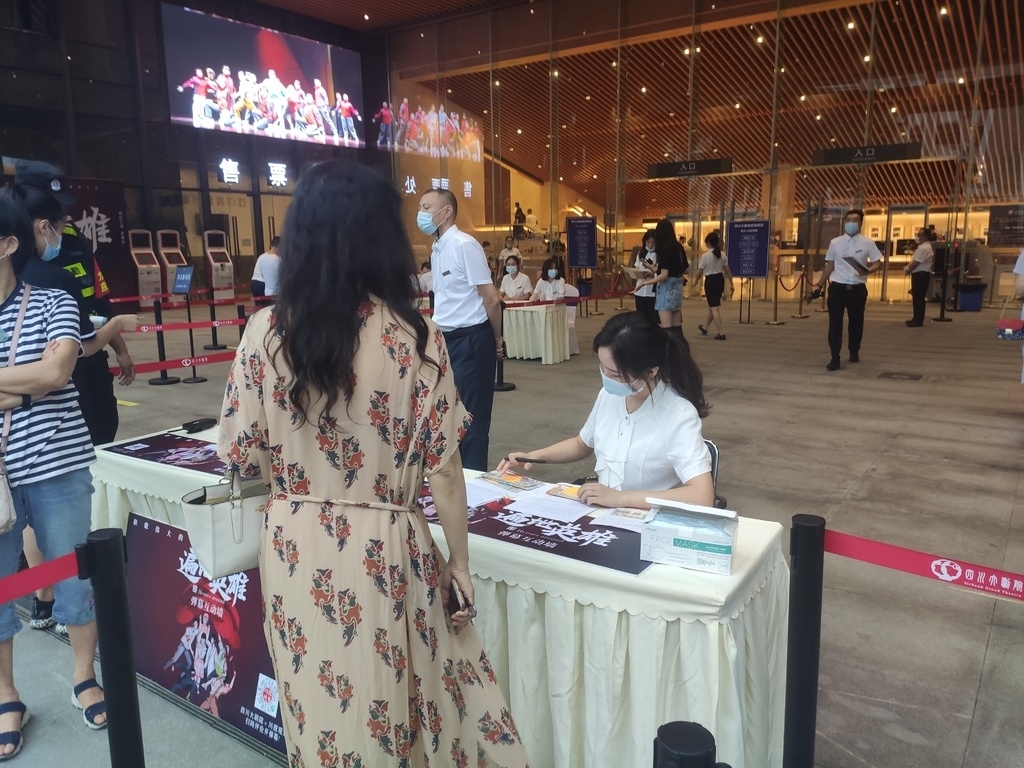 戴口罩、测体温、查看天府通二维码、隔位而坐……8月13日晚,四川大剧院疫期阔别了观众200多天,终于开门复工迎客。抗疫题材的原创音乐剧《遍地英雄》在此上演,本剧由中视瑞峰(成都)文化传媒有限公司与四川大剧院联合出品,讲述了四川各行各业平凡人的故事。