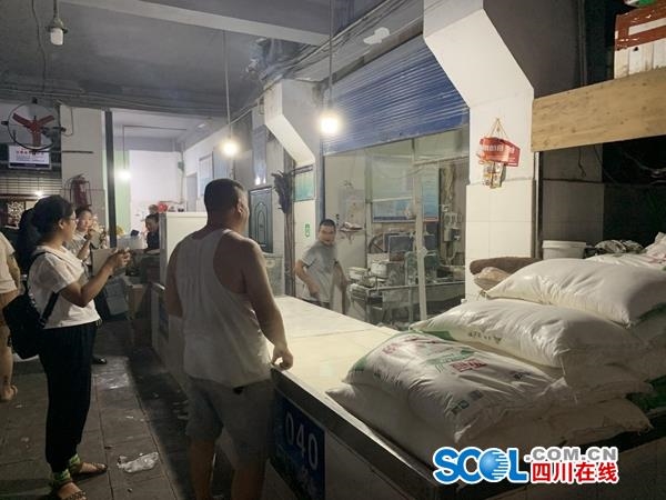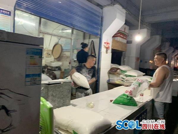 怕面粉遭,泸州市澄溪口农贸市场内,面粉点老板连夜扛3吨面粉。魏冯摄