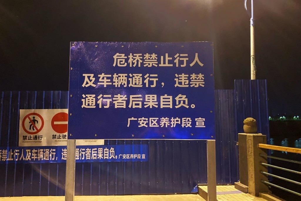 广安区交通运输局相关负责人表示,该局公路管理部门在收到消息后,立即赶赴现场进行核查。核实之后,为了行人通行安全,立即对老大桥进行了封闭工作。同时,区养护段还安排了安全值守,随时观测桥梁情况,以及提醒行人。