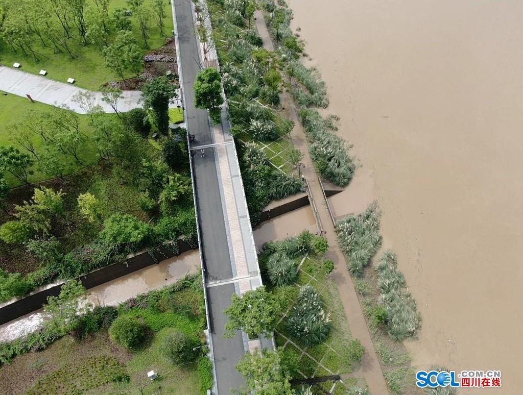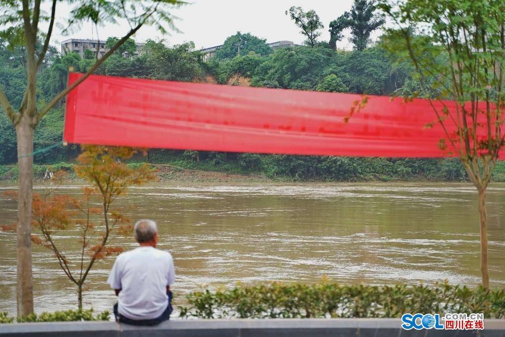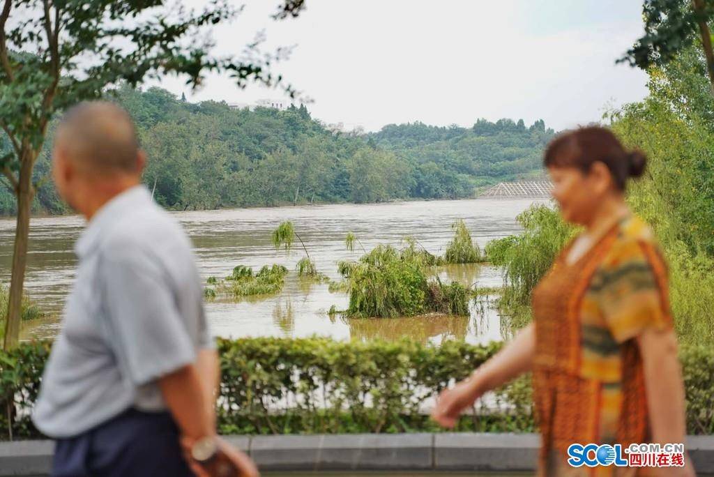 “水退了!”8月14日,洪峰过境后,内江城区沱江水位正渐渐下降,各特征断面水位均已退至警戒水位以下。