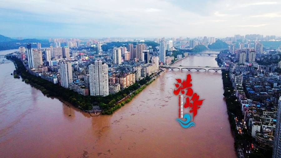 长江沱江交汇处水位上涨情况及沿江两岸。
