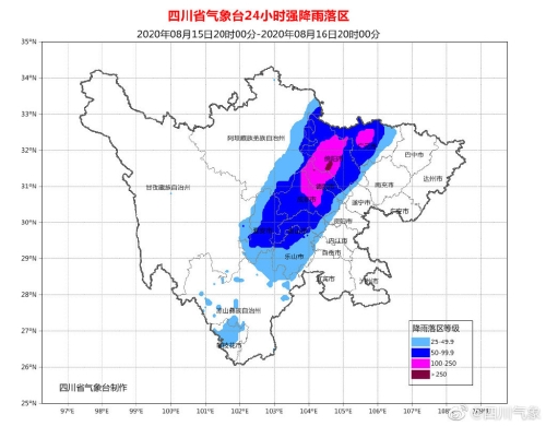 四川在线消息 四川省气象台8月15日16时00分将暴雨蓝色预警升级为暴雨黄色预警: