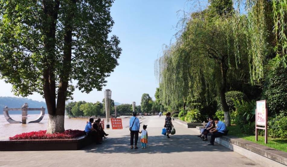 8月15日上午,烈日炎炎,泸州市江阳区滨江路,拍照和看水市民寥寥无几。就在13日晚,想来看稀奇的群众,把沿江的观水平台围了个遍。
