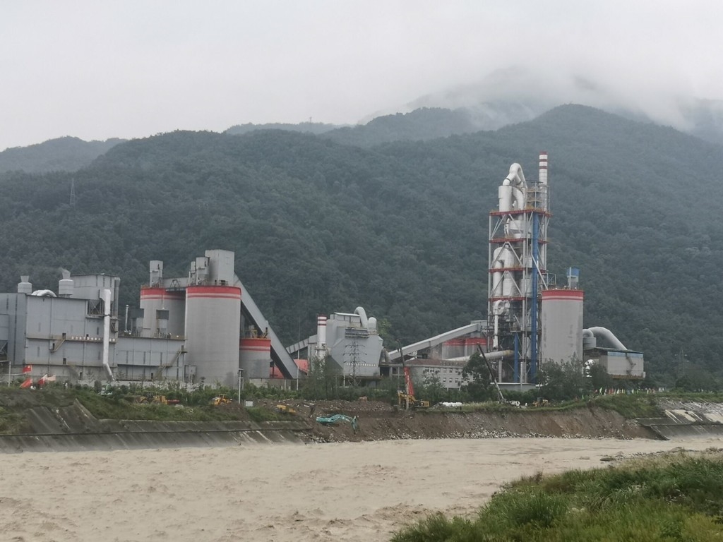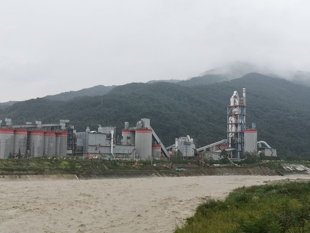 从对岸可见,长约250米的石亭江堤防已完全垮塌掉入江中,出现了一个巨大的缺口,该段河岸向广青公路和四川什邡西南水泥有限公司方向凹陷。