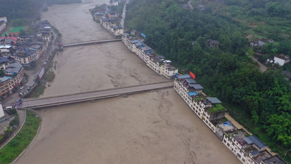 8月10日以来,四川北川连续遭受了两次特大暴雨袭击。连续的强降雨造成位于青片河和白草河下游的通口河河水陡涨。导致国道347北川禹里段被淹。