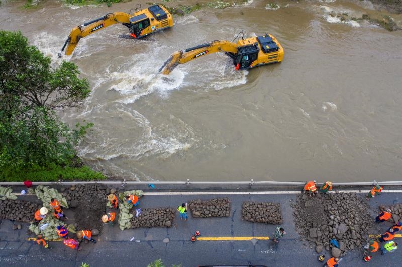 8月16日凌晨2:50,橙色预警汛情响应启动,彭州交通共出动400余人次,共排除落石、桥梁、河堤、护栏、隔离栏、泥石流、滑坡、路基路肩护坡、路面沉降等险情56处。目前,所有险情点位均已设立警示标志并派专人驻点观察险情变化,已全面清理险情18处,其余点位均采取临时处置措施。