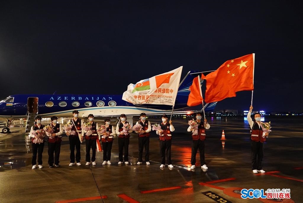 8月17日晚,10名中国赴阿塞拜疆抗疫医疗专家组凯旋回蓉,他们均来自四川大学华西医院。