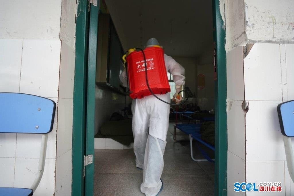 8月16日,工作人员开始对永新小学打扫卫生、消毒、布置行军床。截至8月17日20时,已有356名群众搬进安置点。“住的人多了,每天至少要消毒两次。”韩松说。