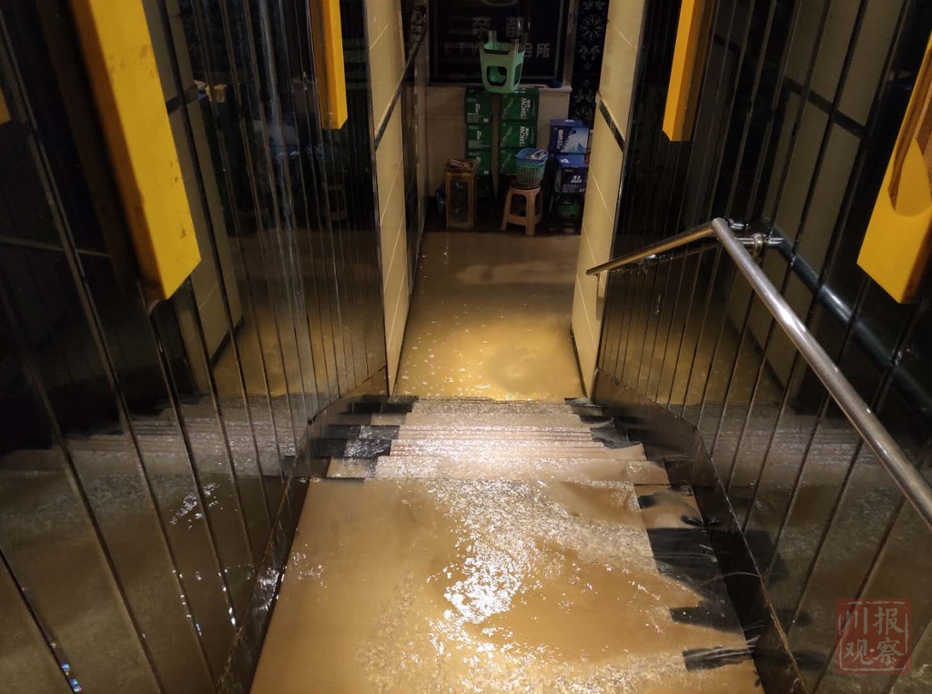 帝都KTV里面,在楼梯处的瓷砖缝隙直接在喷水,水流沿着台阶往下,KTV内部地面全是积水。据滨江社区防汛办主任张朝晖介绍,当初滨江路建造时期,排水技术老,几个低洼地带遇到大水,不可避免要被倒灌。