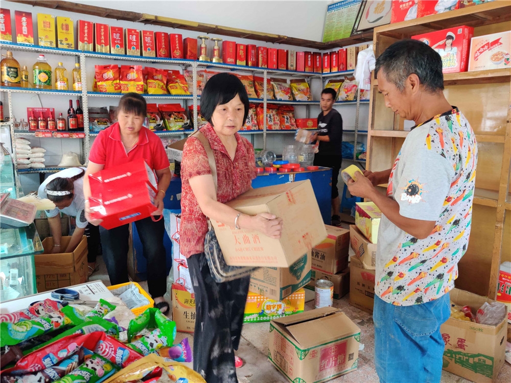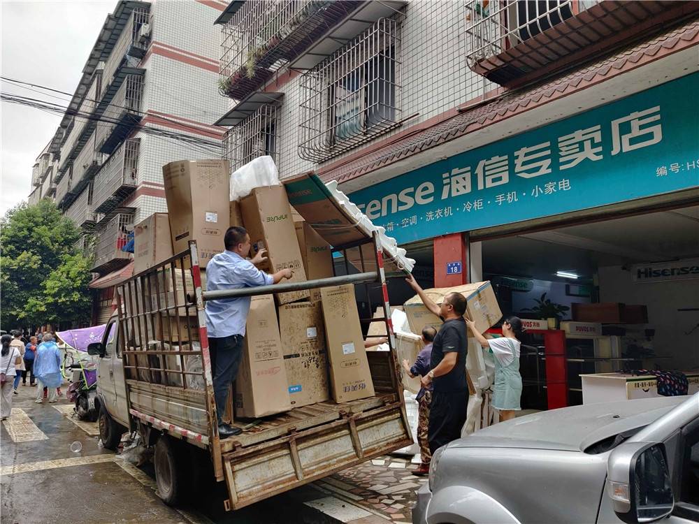 胡市镇滨河街一电器商家正将电器打包装车。胡容摄