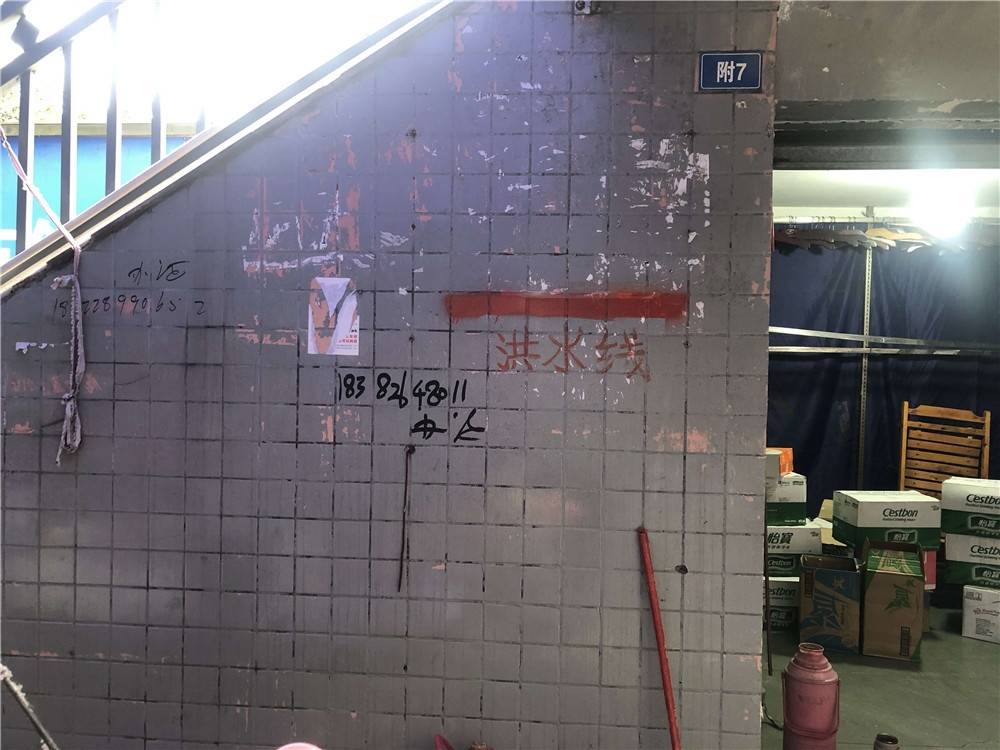 社区工作人员在墙面上画的洪水线。周梦颖摄
