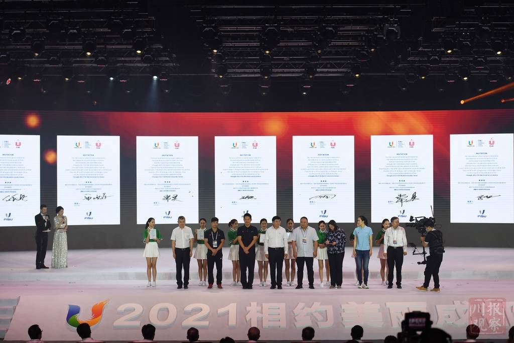 成都这座美丽的城市,诚邀世界青年2021来这里成就梦想。开幕式上,一张张参赛邀请函正式发出,这标志着成都大运会向世界发出正式邀请,张开热情的双臂,拥抱来自全世界各国、各地区的朋友们。