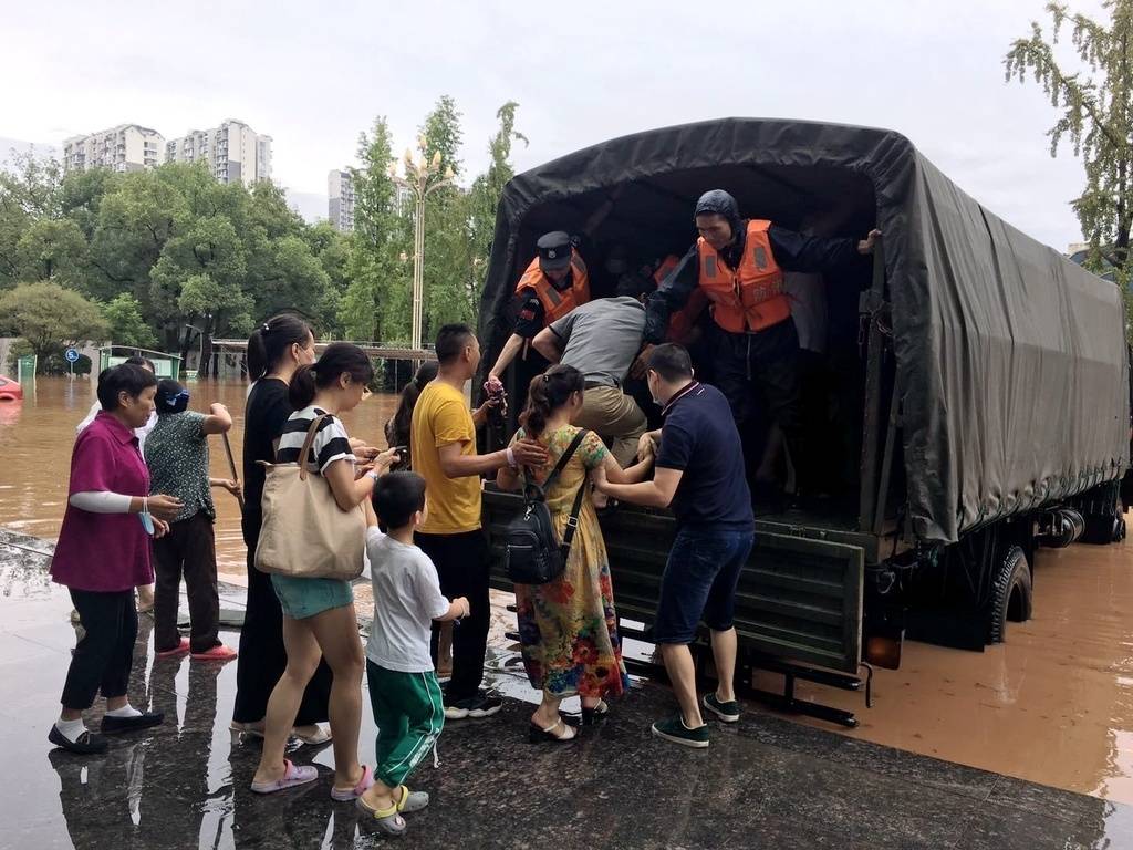 8月18日,特大暴雨突袭乐山。武警四川省总队医院立即启动应急响应机制,医院官兵、医务人员挺身而出,利用卡车、橡皮艇等运输工具,紧急转移安置20余名危重病人和100名病员及家属。