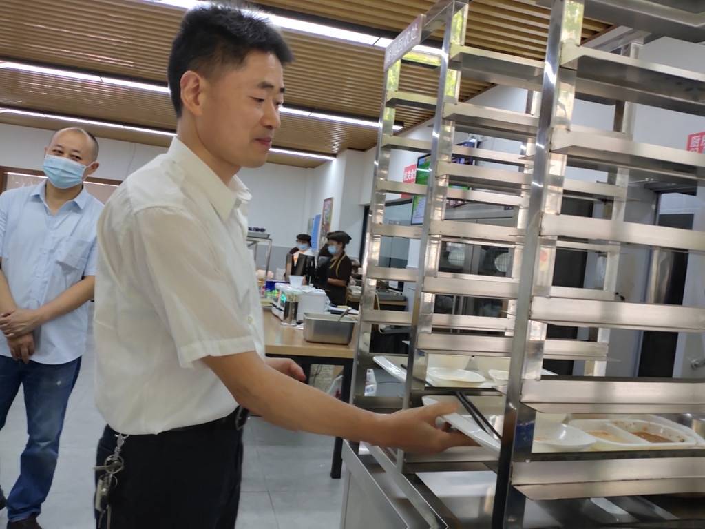 记者在午餐时间走进集中办公区食堂,进门便可看到悬挂于墙上的“粒米虽小犹不易”“一粥一饭当思来之不易”等呼吁珍惜粮食的提示牌。