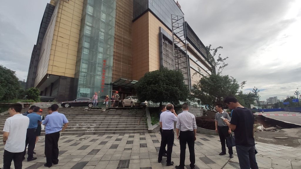 8月19日上午,记者在宜宾市银龙广场路面塌陷现场获悉,经过专家组对工程资料分析和现场初步踏勘后,认为银龙广场主体结构目前处于基本稳定、安全状态。